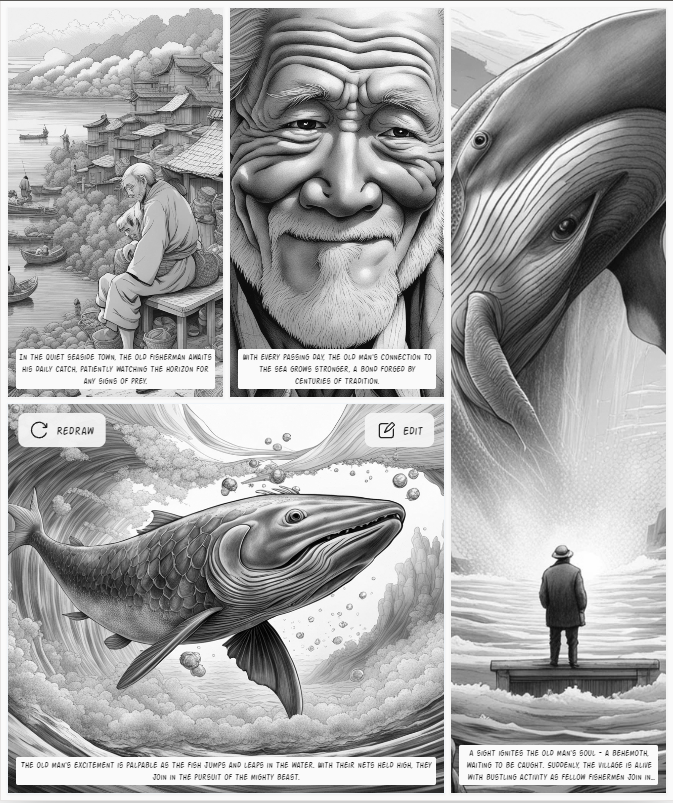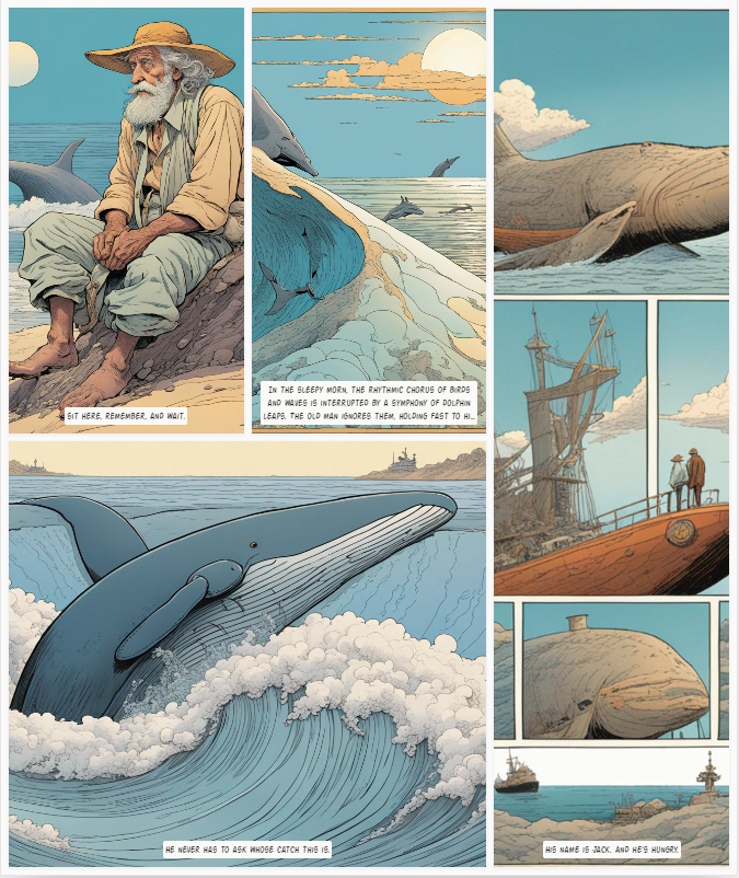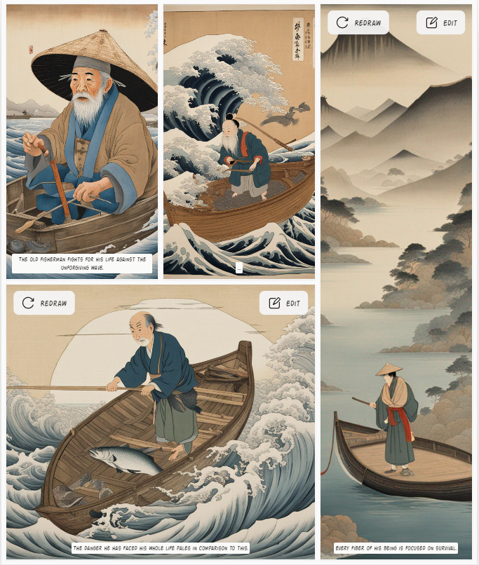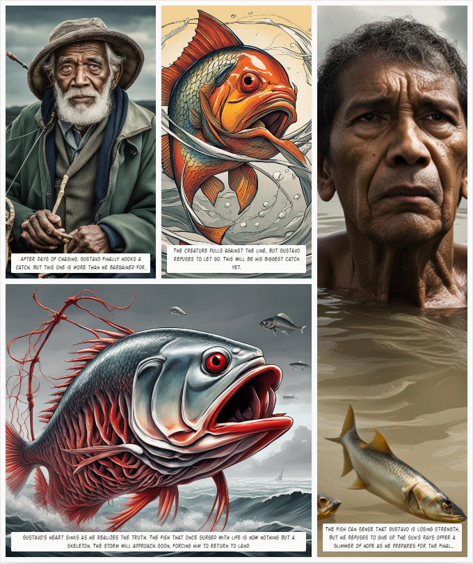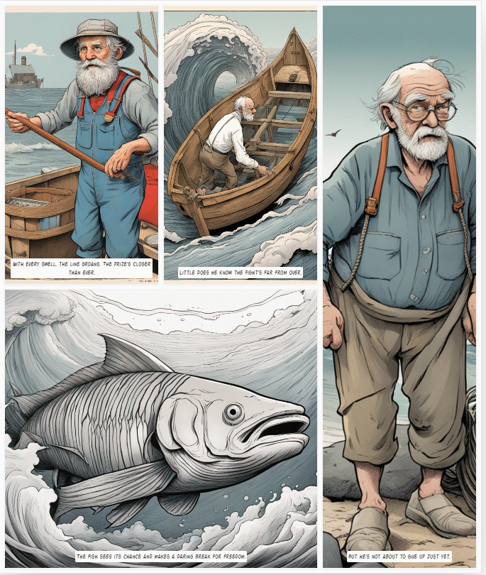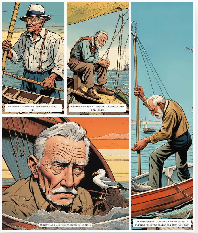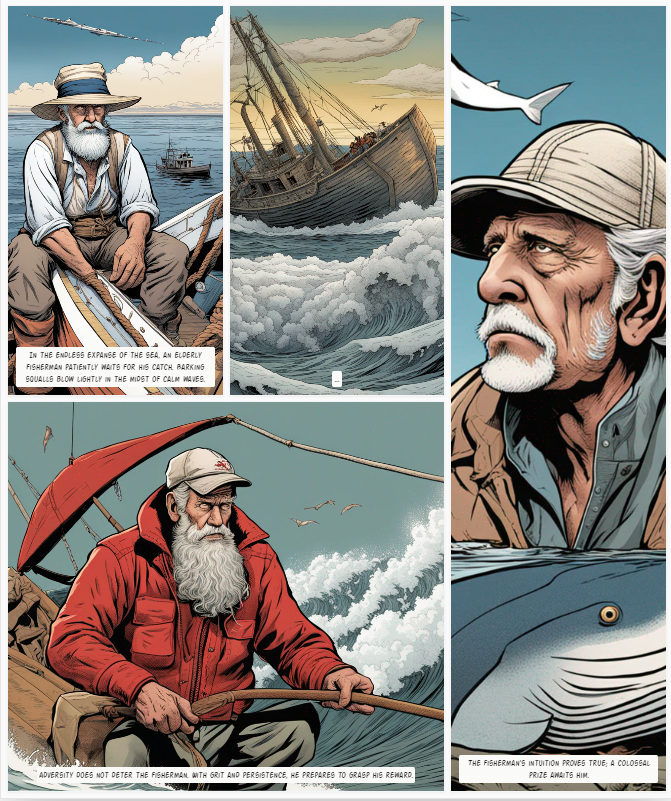 Différents styles de dessins animés du vieil homme et de la mer